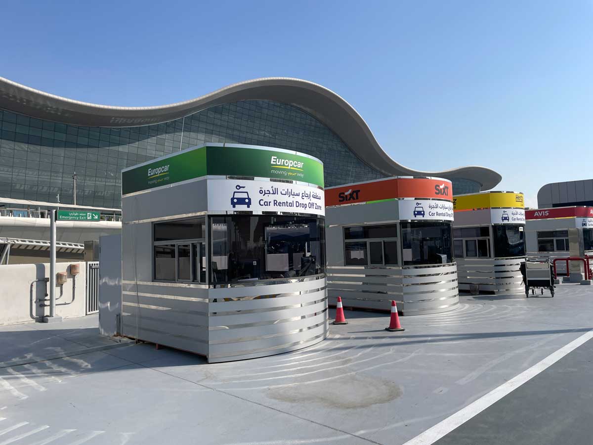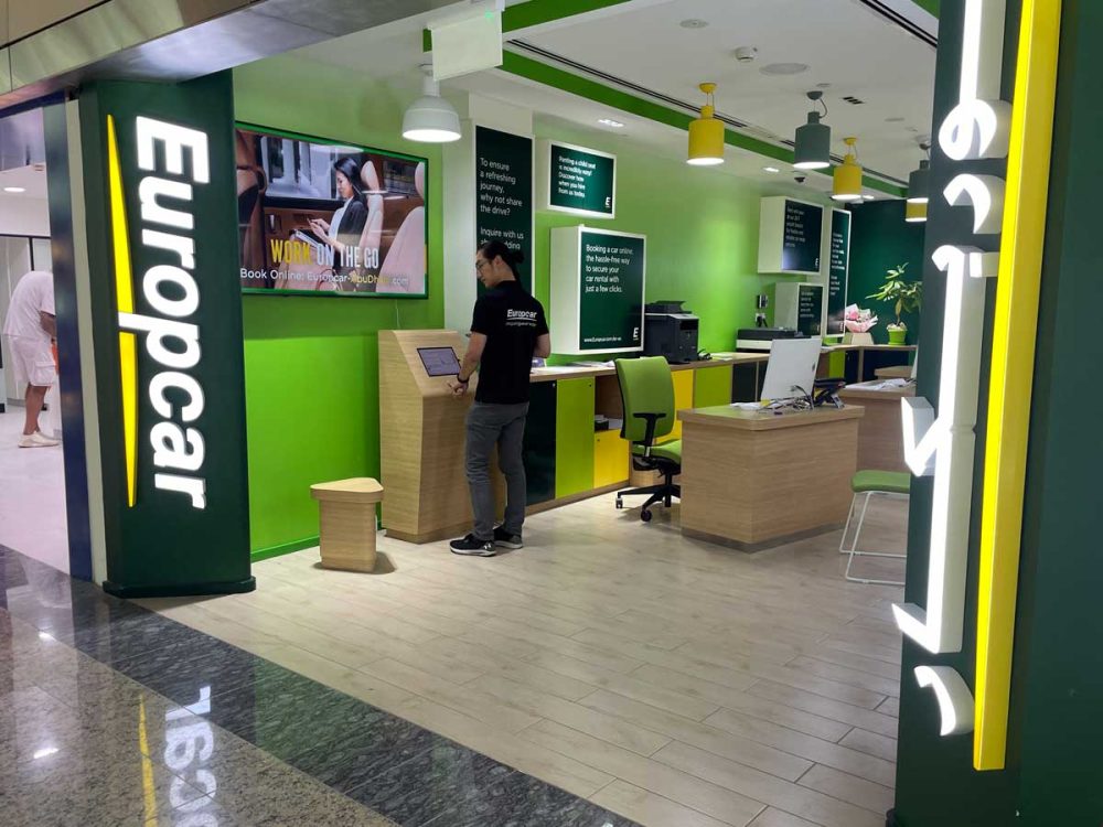 アブダビの空港に到着して、到着フロアからエレベーターで一つ上に上がったところにレンタカーのオフすがずらりと並んでいます。まずはこのオフィスで乗り出し手続き。