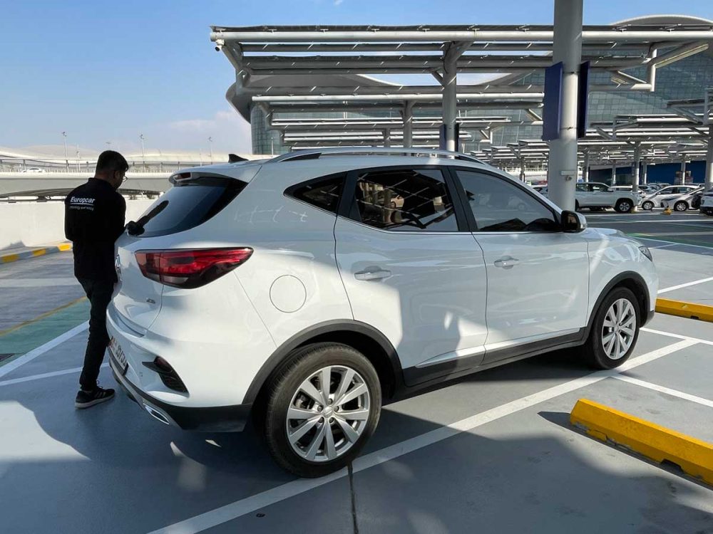 パーキングエリアにあるヨーロッパカーのブースで書類を見せると、スタッフが車のカギをもって車まで案内してくれます。乗車前に外装などをチェックして傷があるところを記録します。自分でも念のため外装写真を一通り撮っておきました。万が一あとでもめないようにと。自分が付けた傷ではないものを請求されるというケースがなきにしろあらずだからです。