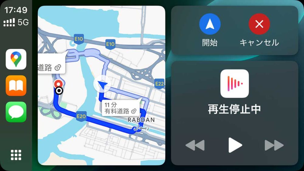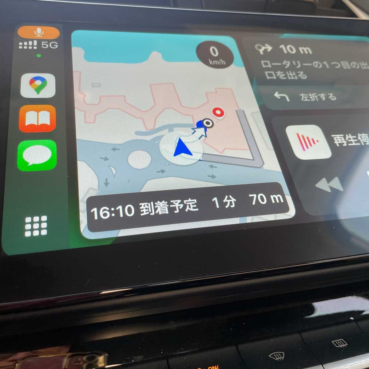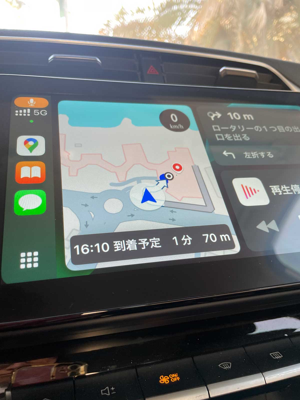 びっくりしたのがナビゲーション。最初、モニターメニューにナビがないぞ?と困惑したのですが、そのあとiPhoneをUSBで充電しようとつないだら、なんとiPhoneのGoogleマップナビがモニターに映し出されたではないですか!?これ、なんぞ?!