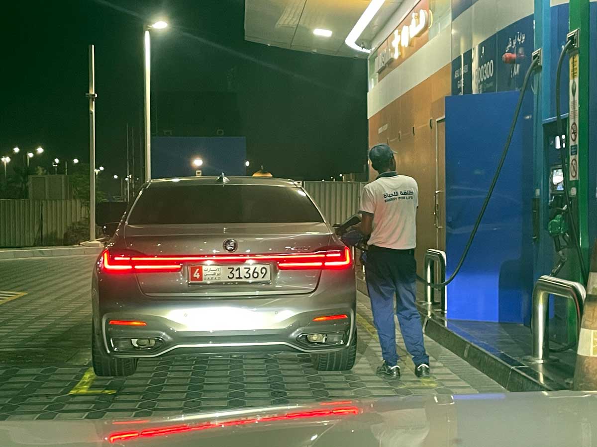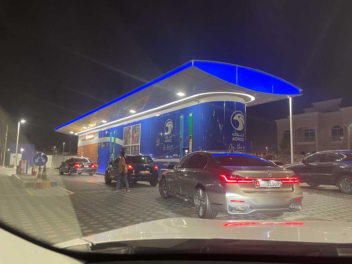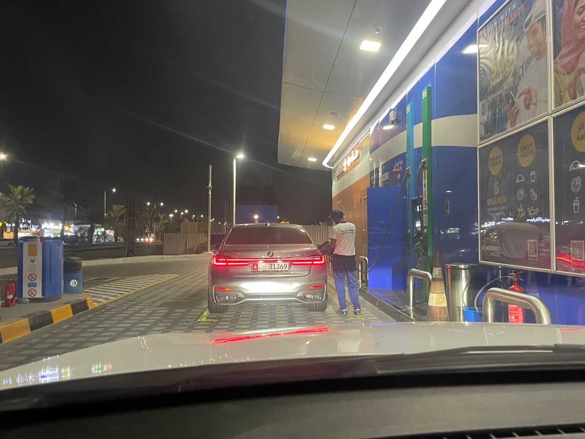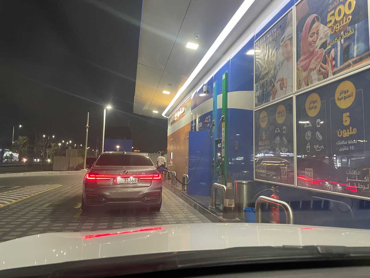 あとでクレカ請求明細を見たら1845円でした。つまり44.4はディルハムだったってことですな。17.48がリットルとすると、ガソリン1リッター=105円です。やすぅ~い♪さすが原油国アラブ首長国連邦。でもこれでも高くなったのだとか。