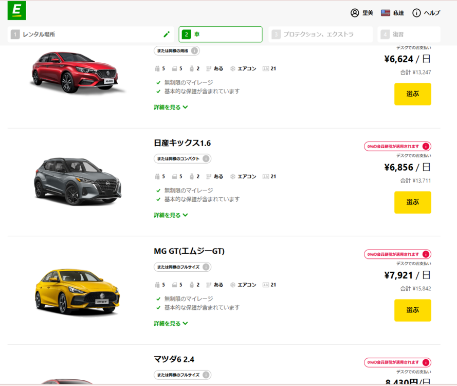レンタカーの手配:価格や車種