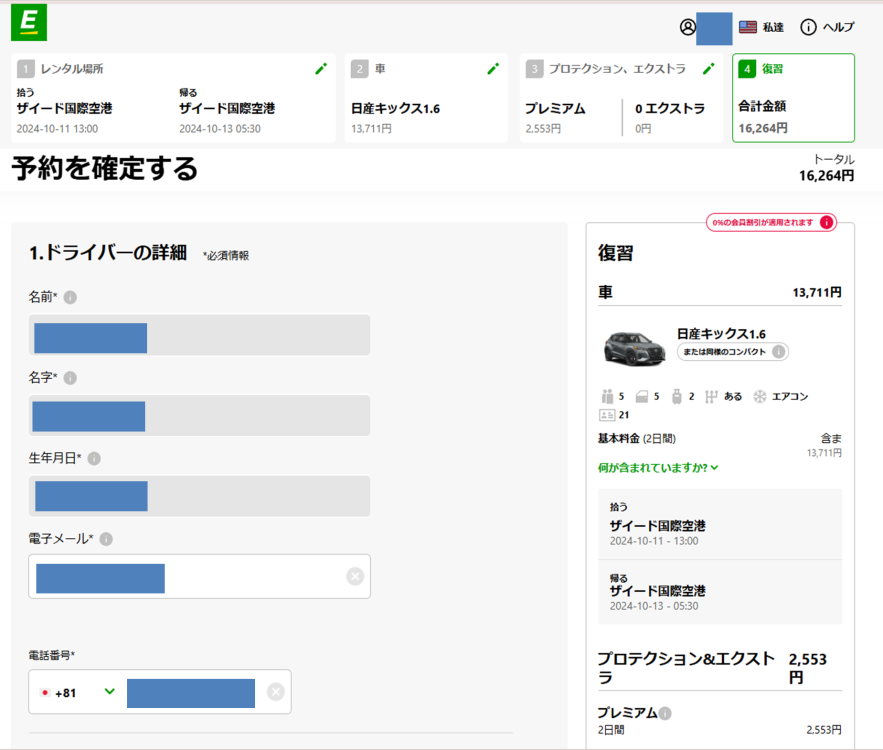 今回はいろいろ比較検討した結果「ヨーロッパカー」で予約をした。なぜなら自家用車として乗り慣れている車種「日産キックス」を貸し出していたからだ。フランスを拠点とするヨーロッパカーですが、日本車の取り扱いが多い。ちなみにオートマ限定免許なので借りるのもオートマです。