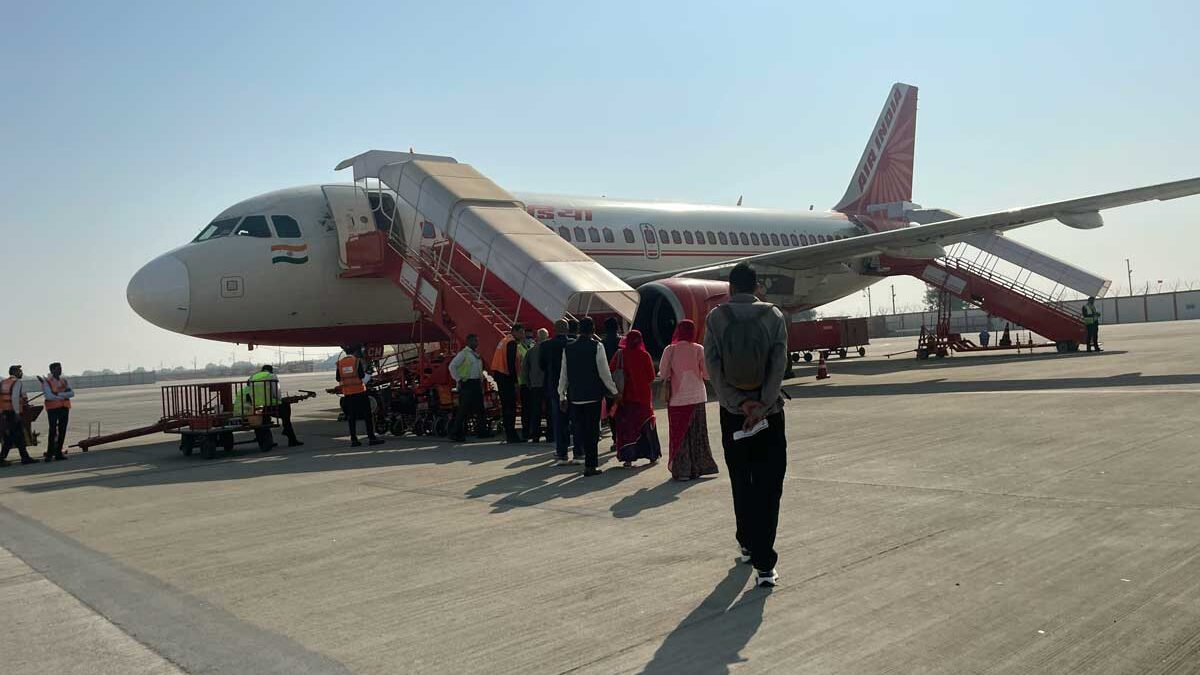 機材はエアバス319なのでさらに古いタイプ。ジョードプルは小さな空港なのでタラップ搭乗です。