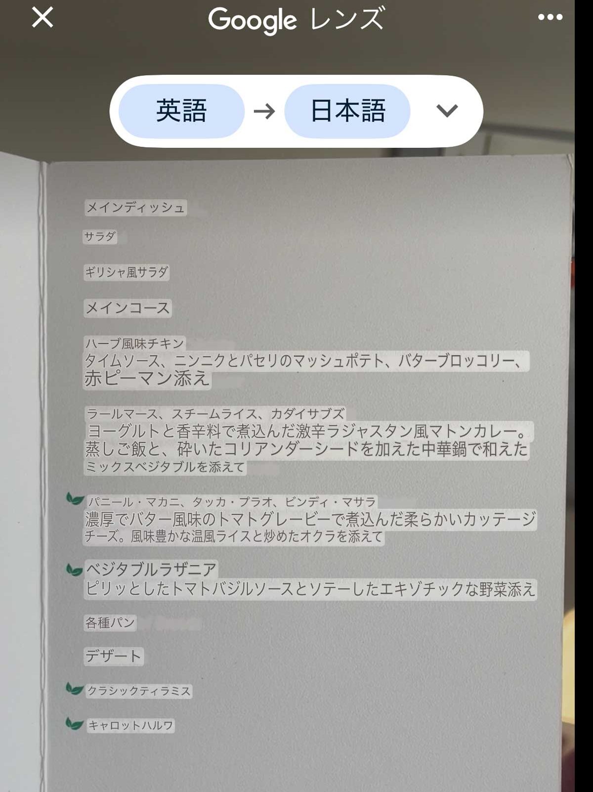 このフライトではメニューがありました。Googleレンズでサクッと翻訳。どうしようかな?