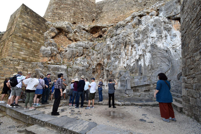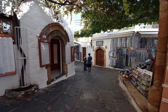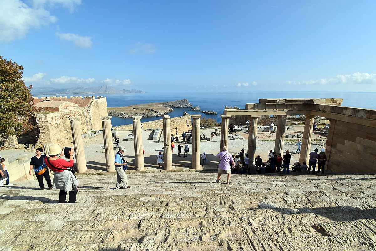 アテネのアクロポリスと同じようにここリンドスも小高い丘の上に古代都市遺跡がある。ツアーでは頂上まで解説を聞きながらみんなで登っていく。希望者はドンキー(ロバ)で登ることもできる。体力を温存したい私はこのドンキーを利用することにした。片道8ユーロ。思った以上に揺れるので手に力が入りスリリング。絶景ルートでこれは面白い。ドンキー君にはなんだか申し訳ないが力持ちだね。