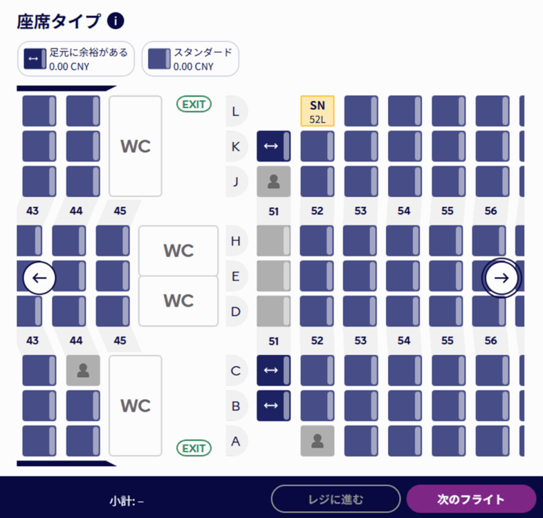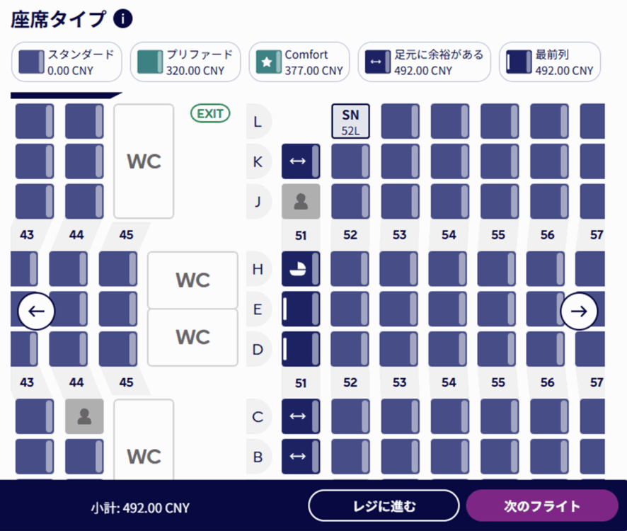 これで往復併せて1098CNY、円換算で約24,000円です。少々お高めではありますがこれで片道それぞれ12~14時間もの長時間フライトが快適になるならアリ、ということで課金です。