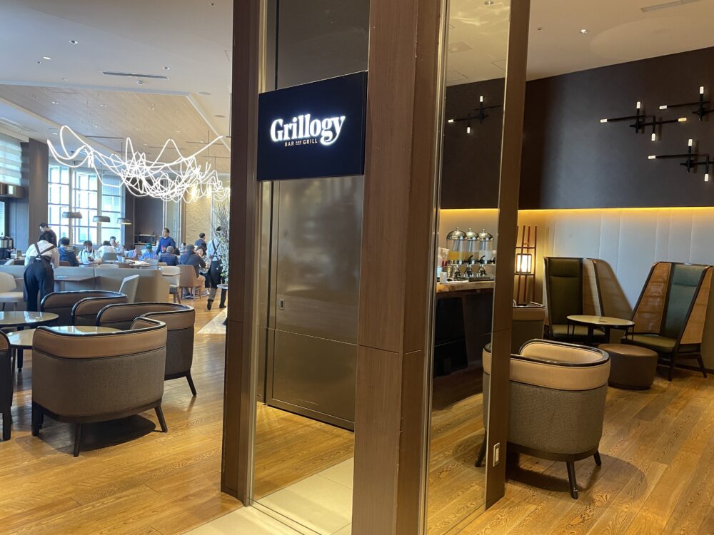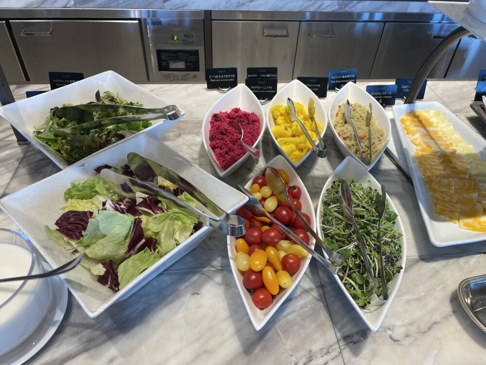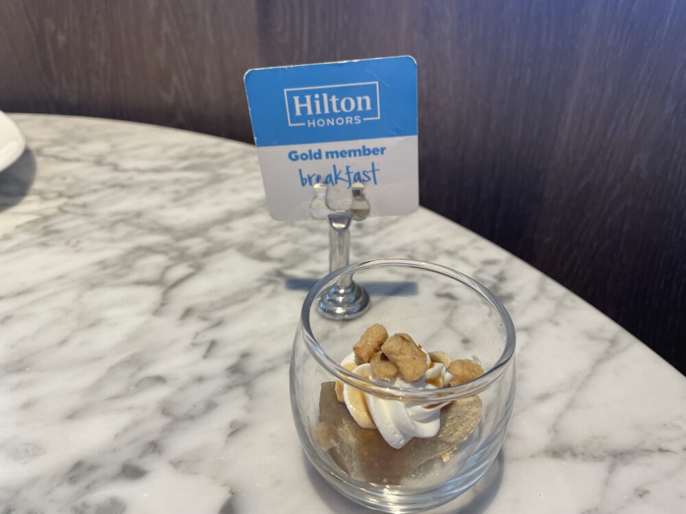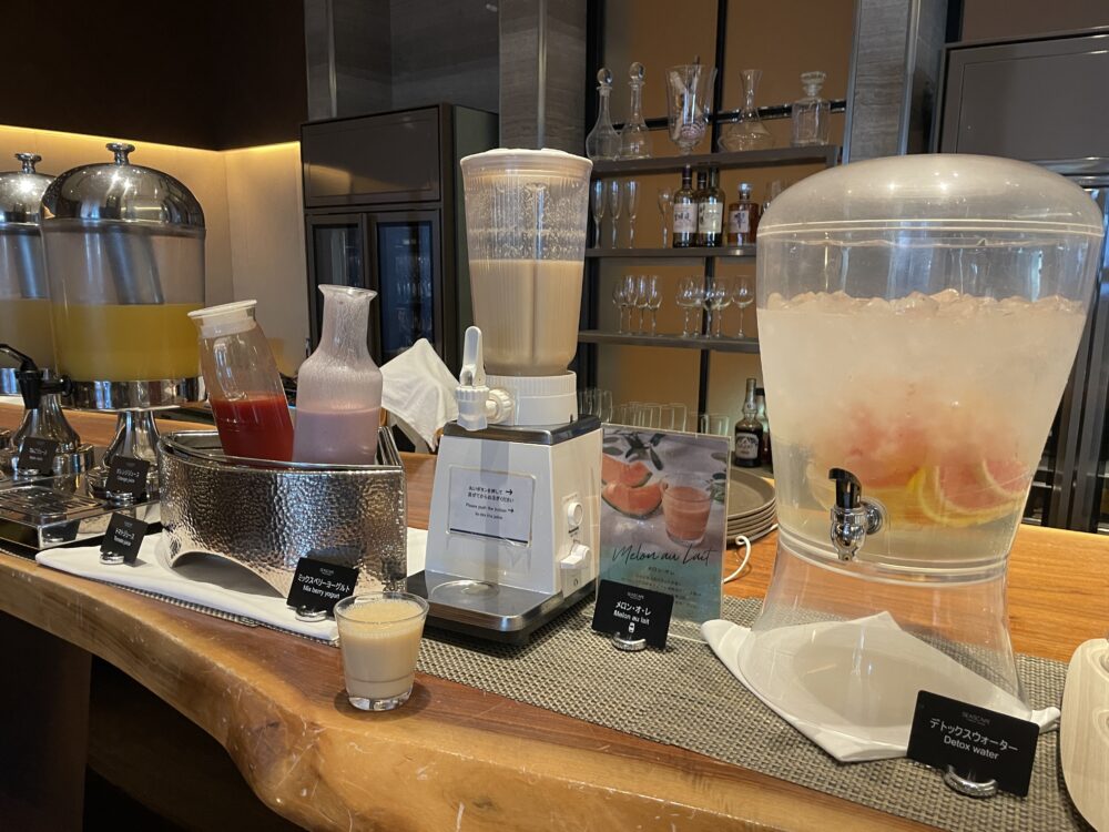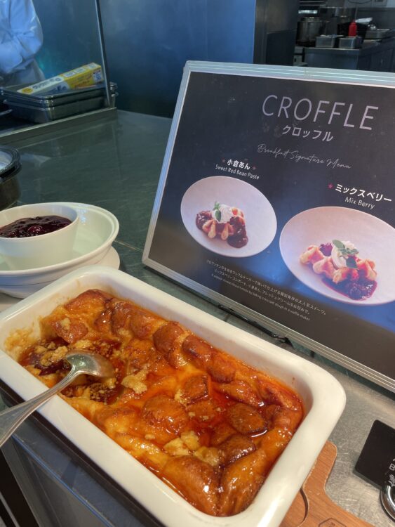1階シープケーステラス&グリロジーでの朝食ビュッフェ。通常大人 4,200円がゴールドオナーズゲストは無料。窓際の良い席に案内してもらったり、オリジナルミニスイーツをもらえたりのサービスも。
