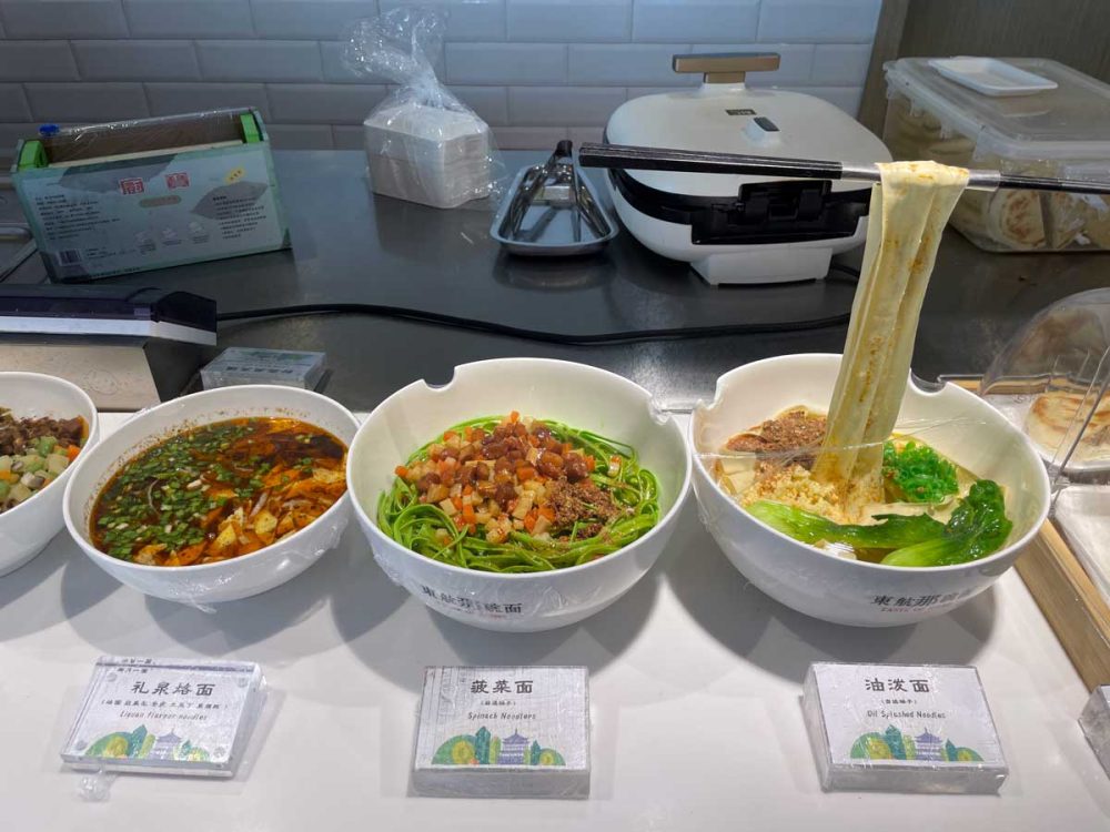西安と同じくオーダーメードの麺コーナーがあります。小籠包が上海らしい。