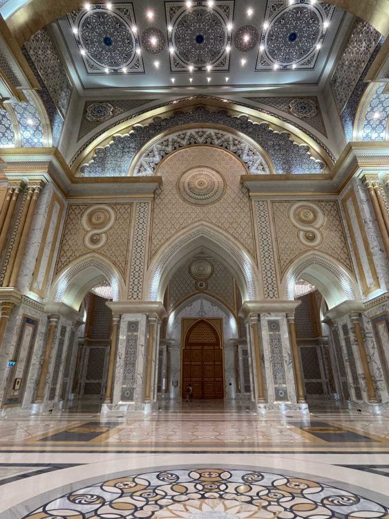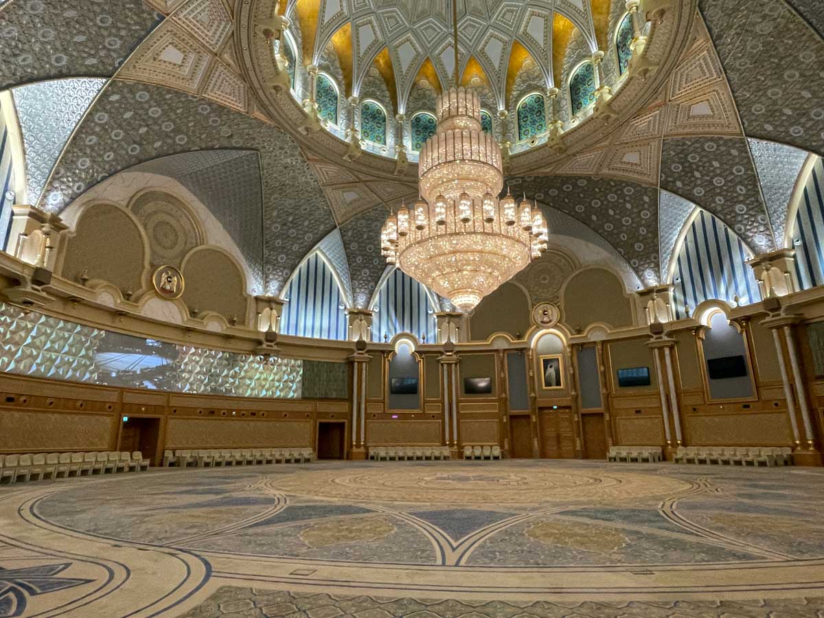 - 内部装飾: 内装も同様に豪華で、金箔、精緻なモザイク、手彫りの木材装飾などが施されており、UAEの文化的な富を象徴しています。