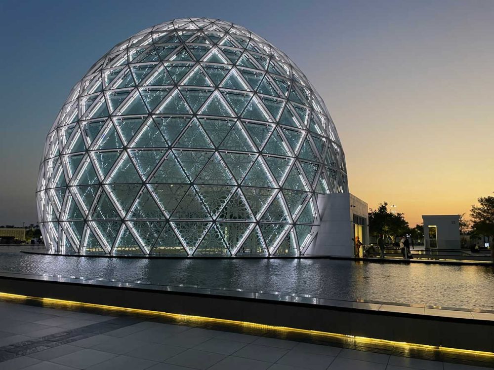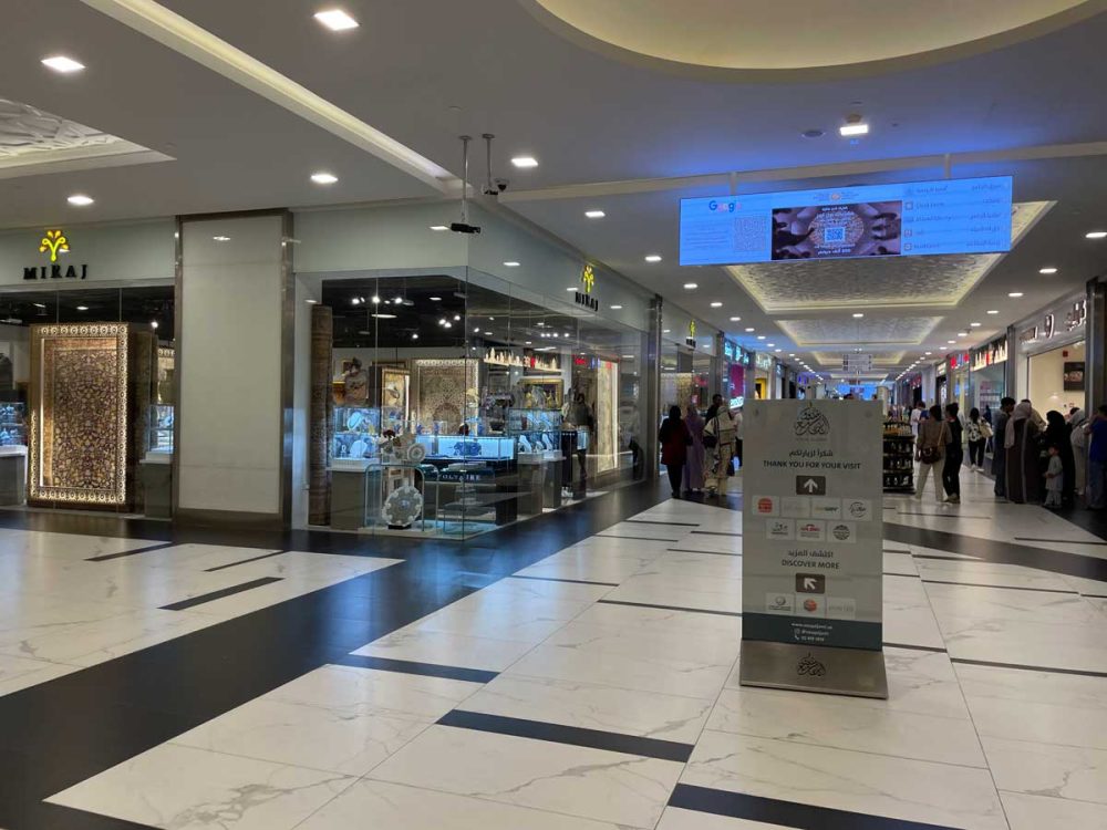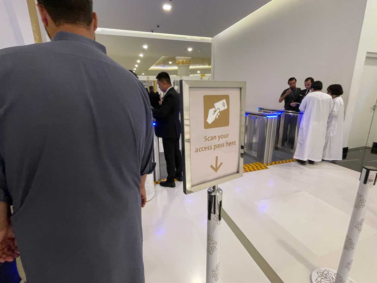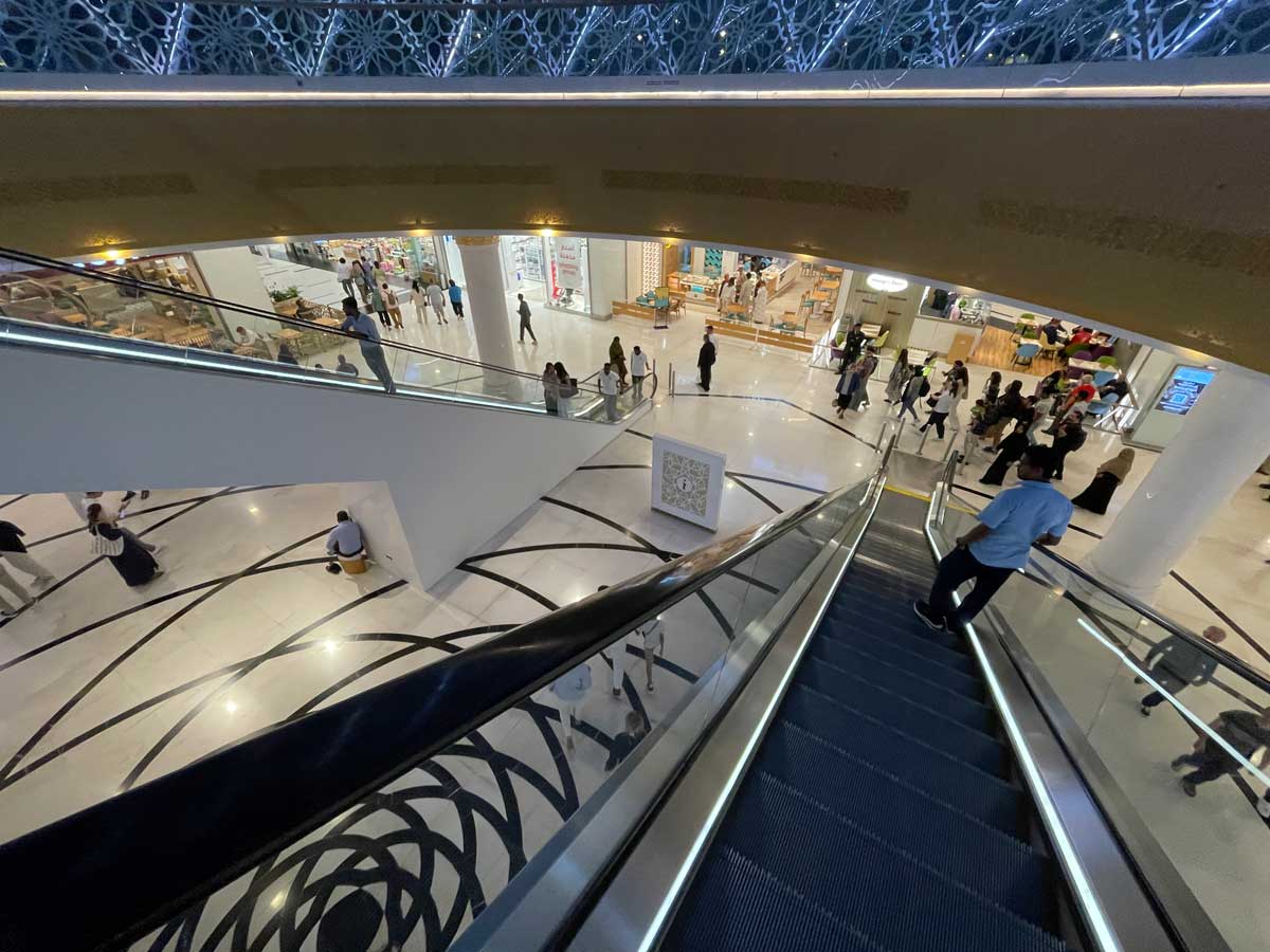 球体のガラスの建物から地下に降りたところにショッピングモールと一体化したビジターセンターがあり、エントランスはここになります。地下通路を10分くらい歩いてモスクに入る経路となります。