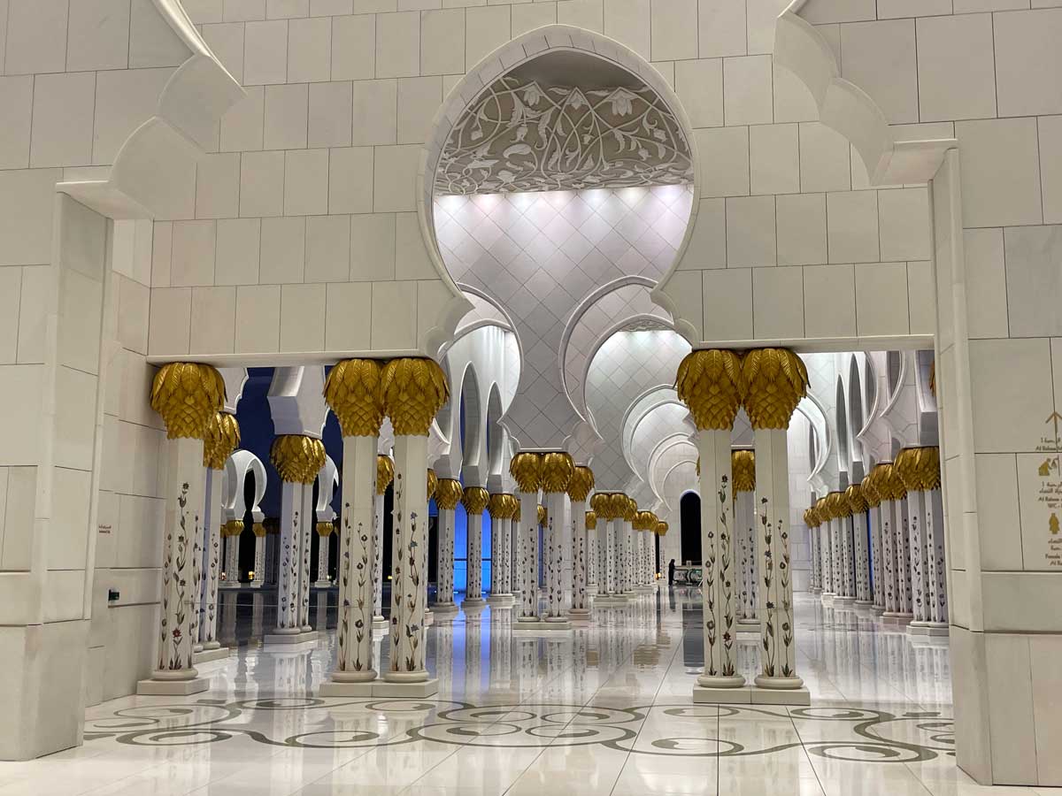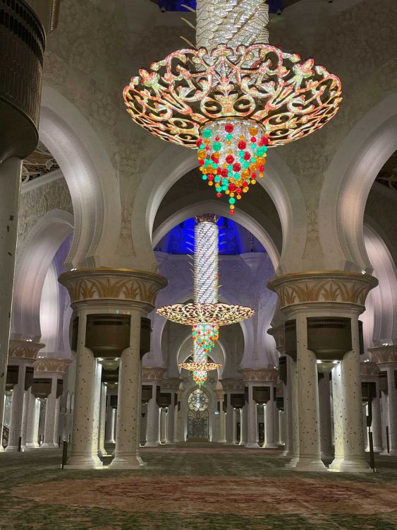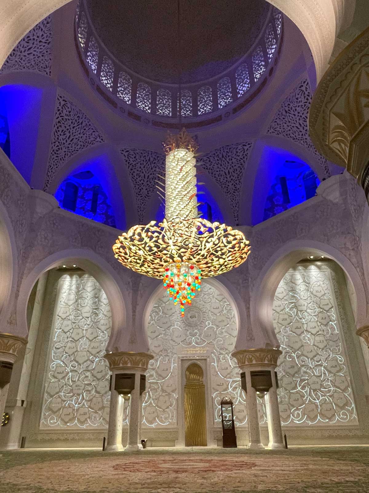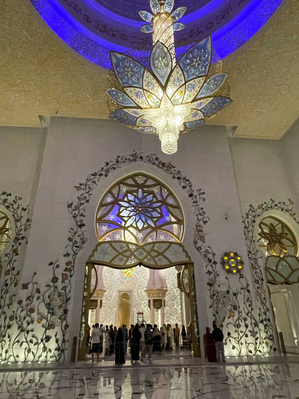 • カーペット: モスクの主礼拝ホールには、世界最大の手織りカーペットが敷かれています。これはイランの職人によって作られ、その重さは35トンに及びます。