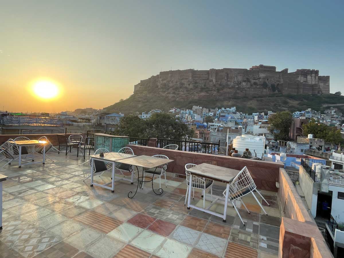 ジョードプルでどこに泊まろうかとさんざん迷って最終的に決めたお宿が「ジ アーク ブティック ホーム ステイ」です。旧市街のど真ん中という好立地と歴史的建物をそのまま使った雰囲気のあるヘリテイジブティックです。ルーフトップからは旧市街とメヘラーンガル城塞を一望でき、この絶景が決め手でした。