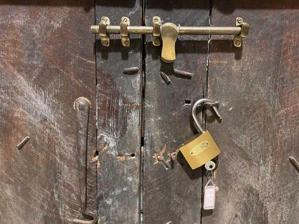 3階にある部屋でドラクエにでも出てきそうなファンタジーな世界観のインテリア。「旅の宿」という感じがむんむん。扉の鍵はなんとカンヌキと南京錠。窓も木製で開くと外。ガラスはない。