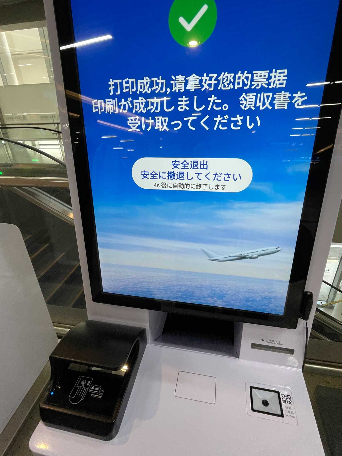 数台あるキヨスクにはすでに数人の日本人が四苦八苦しています。どうも挙動が不安定のようで、何度もやり直していました。途中であきらめ、手書きの書類に切り替える人も。