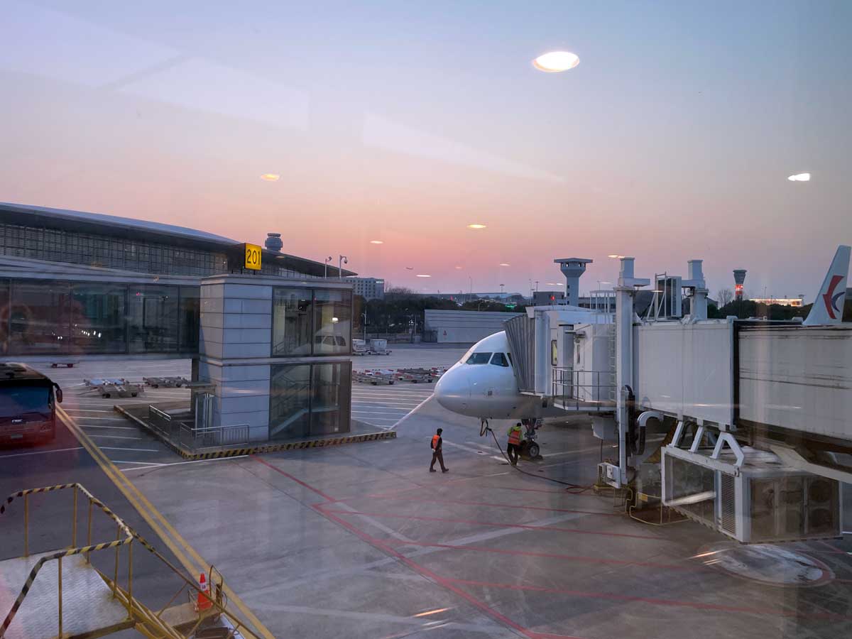 成田出発が遅れたため、南京に到着したのは定刻より30分遅い16:30。それでも出発までは2時間あるので気持ちは余裕でした。乗継便のボーディングタイムは18:05、出発は18:50です。