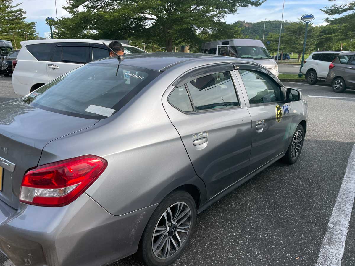 フーコックの空港からホテルまでは車で約30分。ホテルの予約プランには空港送迎(往復)も困れているので利用しようかと思って問い合わせたら、決まった時間に運航しているシャトルバスがあるだけで、だいぶ待つことになるのであきらめました。自分で送迎を事前に手配して(2,324円)ホテルに向かいました。