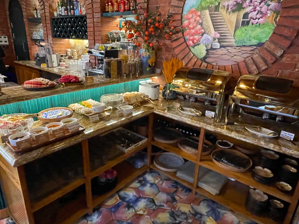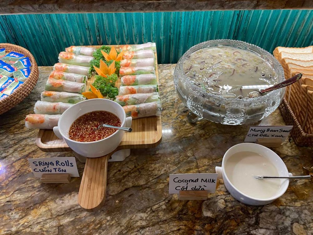ハーフビュッフェスタイルで、基本はオーダー制。フォーと卵焼きを作ってもらいました。