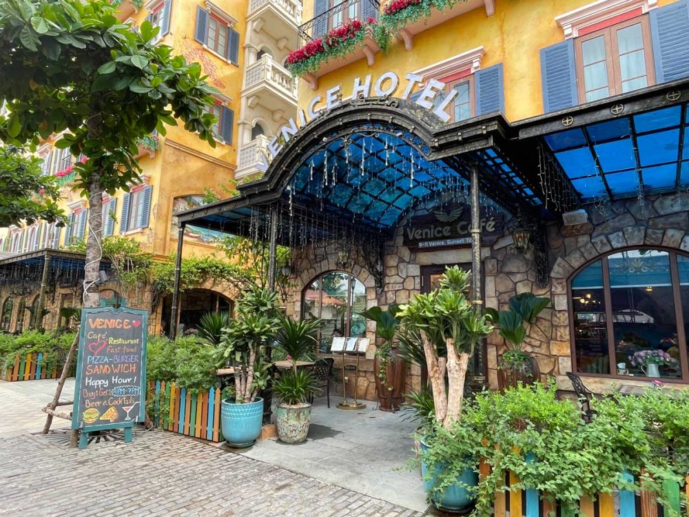 ベトナムフーコックの南部、サンセットタウンSunset Town にあるホテル「ベニスホテルVenice Hotel」に滞在したレポートです。サンセットタウンは観光客向けに大開発されたエリアで、イタリアのヴェネチアを模した街を再現しているテーマパークのような町です。今回滞在したホテルもまさにイタリアヴェニスにいる気分になれるかわいいイタリアスタイルのブティックホテルでした。