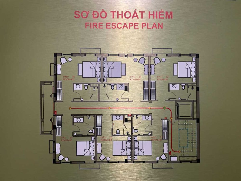 ホテルで必ず撮っておくフロアマップ。自分の部屋がどの位置づけなのかを知れる